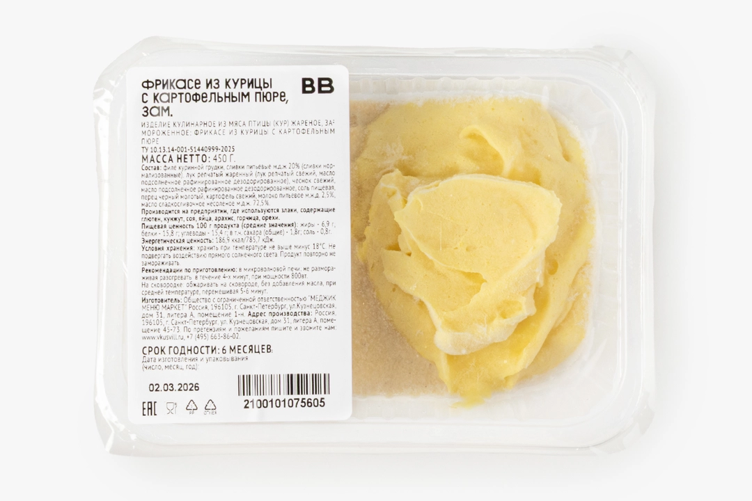 Фрикасе из курицы с картофельным пюре, замороженное