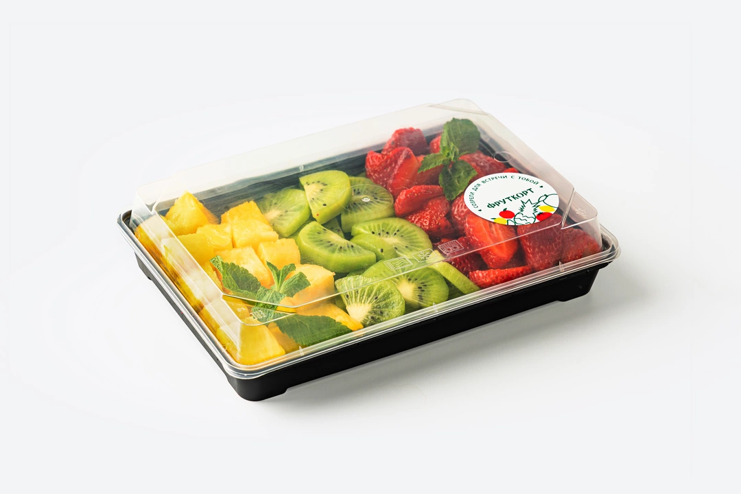 Классическое сочетание тропического ананаса, нежной клубники и освежающего киви. Яркая композиция, которая подарит праздничное настроение и станет прекрасным подарком. Все фрукты тщательно отобраны и нарезаны для вашего удобства.