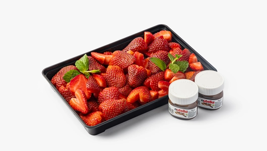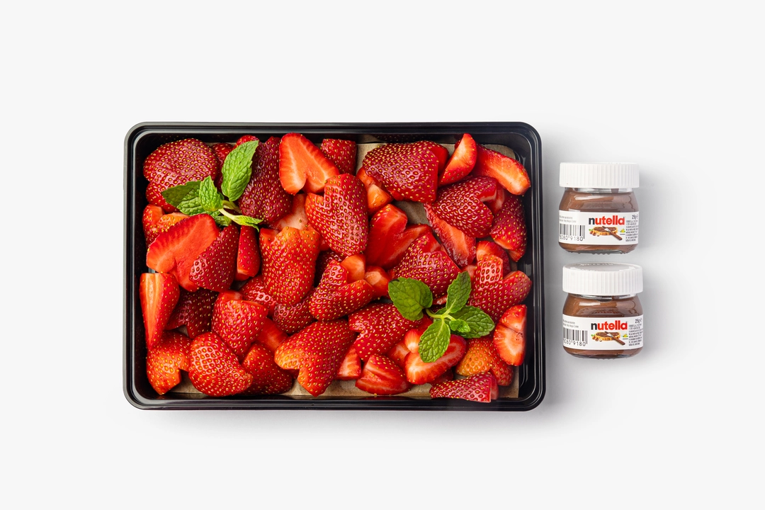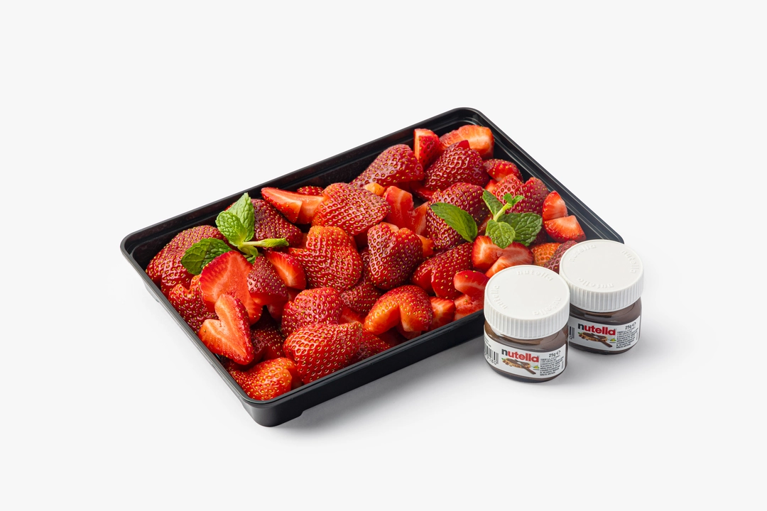 Спелая и ароматная клубника, аккуратно нарезанная в форме сердечек и выложенная на тарелке. Удобно подать на стол и разделить на двоих или небольшую компанию. Подаётся с шоколадно-ореховой пастой. Используем отборные ягоды и готовим нарезку в течение дня — всегда свежая, с приятным кисло-сладким вкусом. Фруткорт — это наша собственная кухня, где мы сами готовим свежие нарезки и напитки в течение дня. Больше информации и другие позиции можно найти в каталоге по слову «фруткорт».