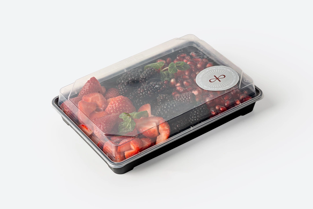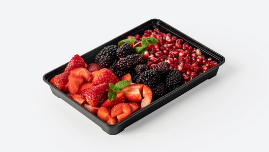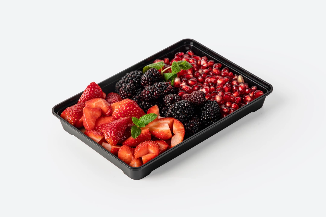 Праздничная фруктовая тарелка из спелой клубники, ароматной ежевики и сочного граната. Используем отборные плоды и обновляем нарезку в течение дня — чтобы фрукты всегда были свежими и сладкими. Фруткорт — это наша собственная кухня, где мы сами готовим свежие нарезки и напитки в течение дня. Больше информации и другие позиции можно найти в каталоге по слову «фруткорт».