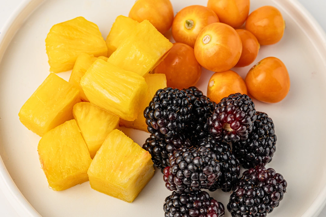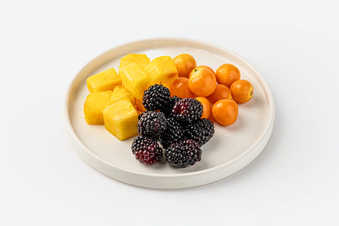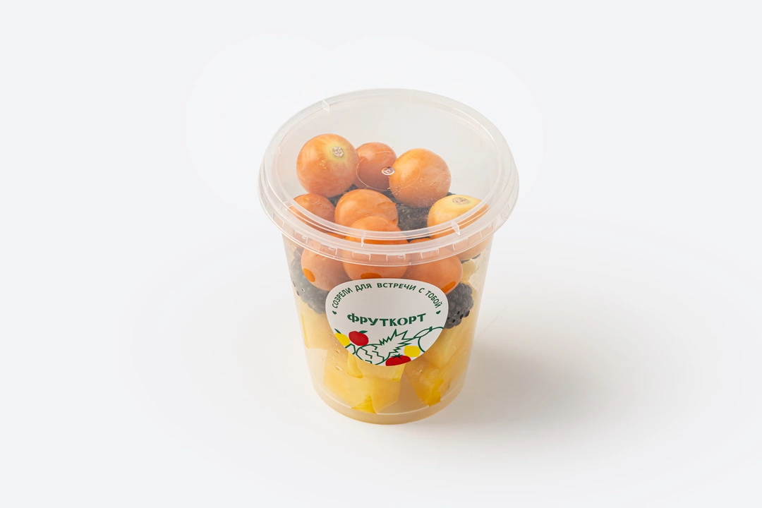 Яркий микс из сладкого ананаса, ароматной ежевики и сочного физалиса в удобном стаканчике. Идеальный выбор для полезного и освежающего перекуса, который подарит заряд витаминов и хорошего настроения!