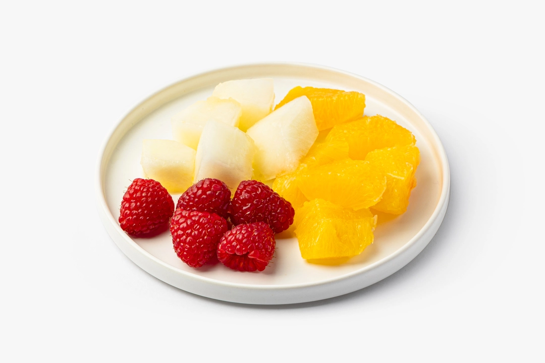 Сочный фруктовый микс из сладкой ароматной дыни, сочного апельсина и ароматной малины. Удобная порция на одного, легко взять с собой. Собираем порцию после заказа, фрукты нарезаем в течение дня, поэтому они всегда свежие и готовые к употреблению. Фруткорт — это наша собственная кухня, где мы сами готовим свежие нарезки и напитки в течение дня. Больше информации и другие позиции можно найти в каталоге по слову «фруткорт».