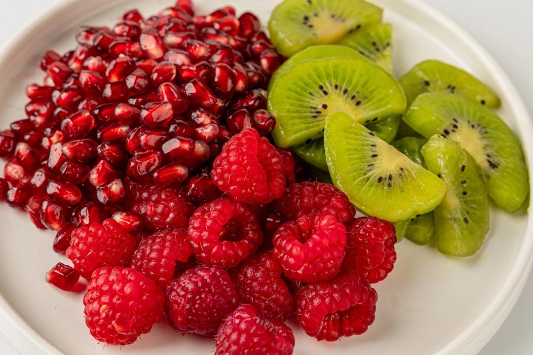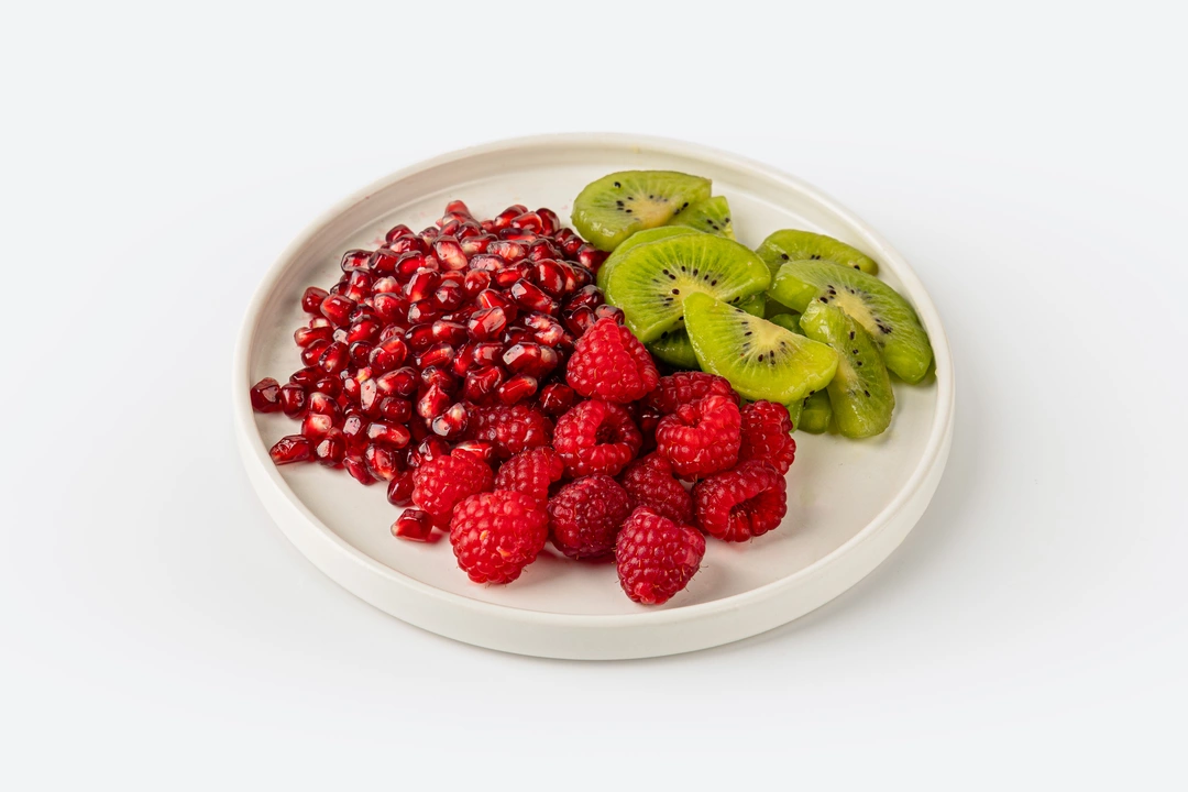 Заботьтесь о себе вкусно! Этот витаминный микс из нежной малины, освежающего киви и хрустящих зёрен граната не только порадует вкусом, но и позаботится о вашем иммунитете. Идеально для перекуса в офисе или на прогулке.