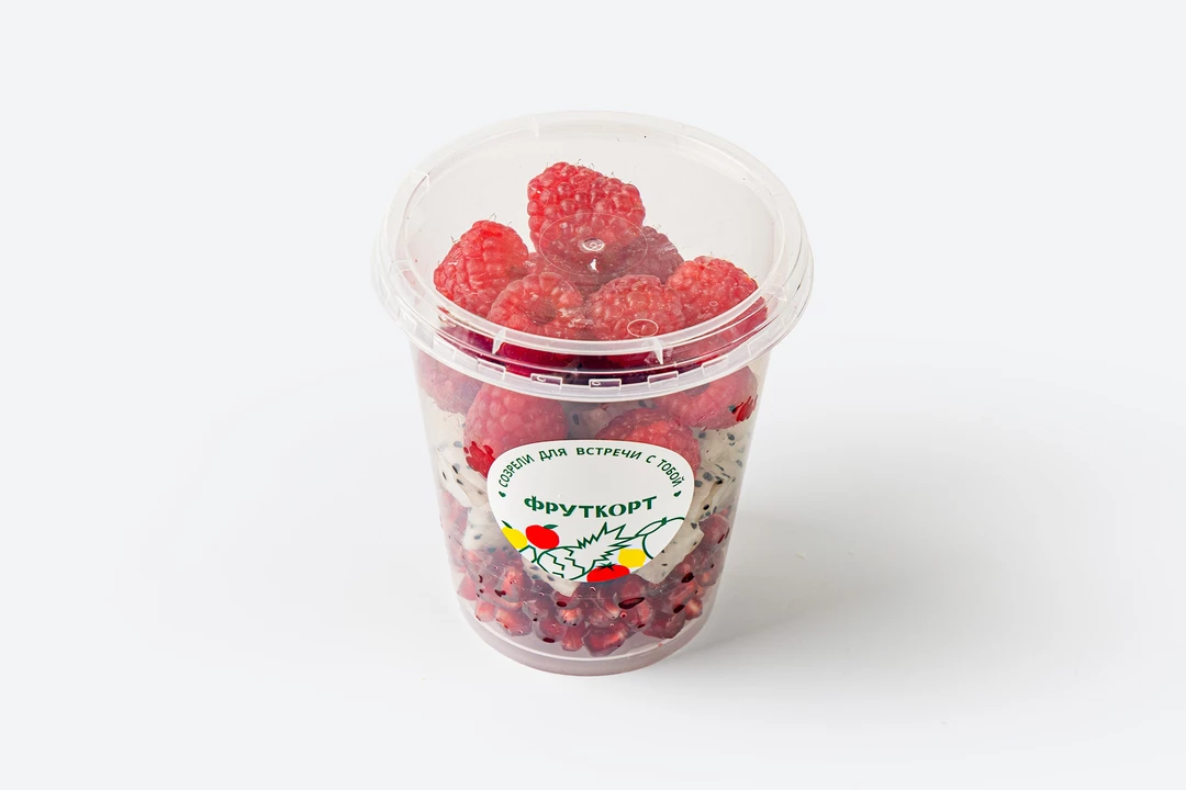 Сочная малина, нежная питахайя и хрустящие зерна граната в удобном стаканчике. Идеально для полезного перекуса в дороге, на работе или на прогулке.