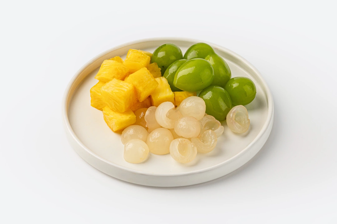 Освежающий микс из хрустящего винограда, сочного ананаса и нежного лонгана в удобном стаканчике. Идеальный баланс сладости и свежести, который дарит заряд бодрости. Прекрасный вариант полезного перекуса в любое время дня.