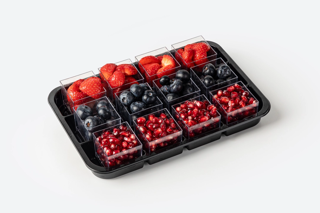 Фуршетный набор из отборных фруктов и ягод. В каждой порции — только спелые, свежие и сладкие плоды, которые мы нарезаем в течение дня. Удобные стаканчики экономят время на сервировке и позволяют гостям легко собрать идеальный фруктовый микс. Фруткорт — это наша собственная кухня, где мы сами готовим свежие нарезки и напитки в течение дня. Больше информации и другие позиции можно найти в каталоге по слову «фруткорт».