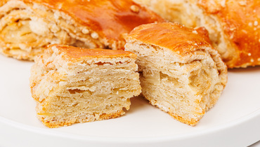 Миндальная гата радует сбалансированным вкусом — здесь нет лишней сладости, зато чувствуется лёгкий ореховый аромат и насыщенный вкус. Тесто на сливочном масле получается рассыпчатым, а миндальная мука и кусочки жареного миндаля добавляют приятную текстуру. Сметана в составе делает выпечку нежной, а ванильная нотка остаётся лёгким шлейфом в послевкусии. Подойдёт для неспешного чаепития или как сытный перекус в течение дня.