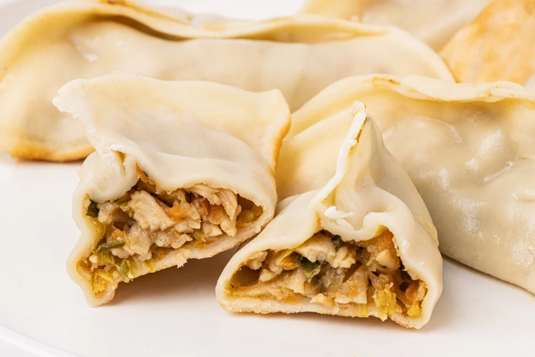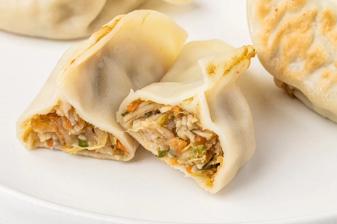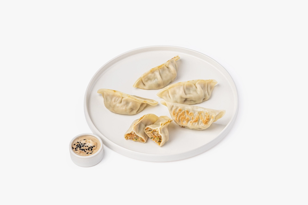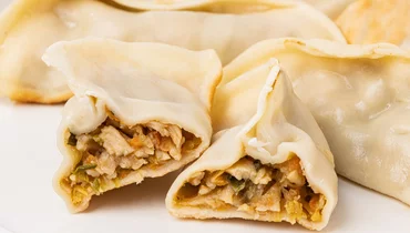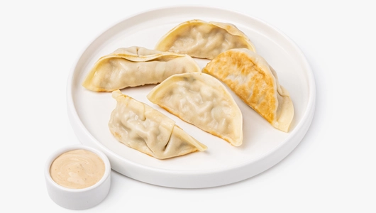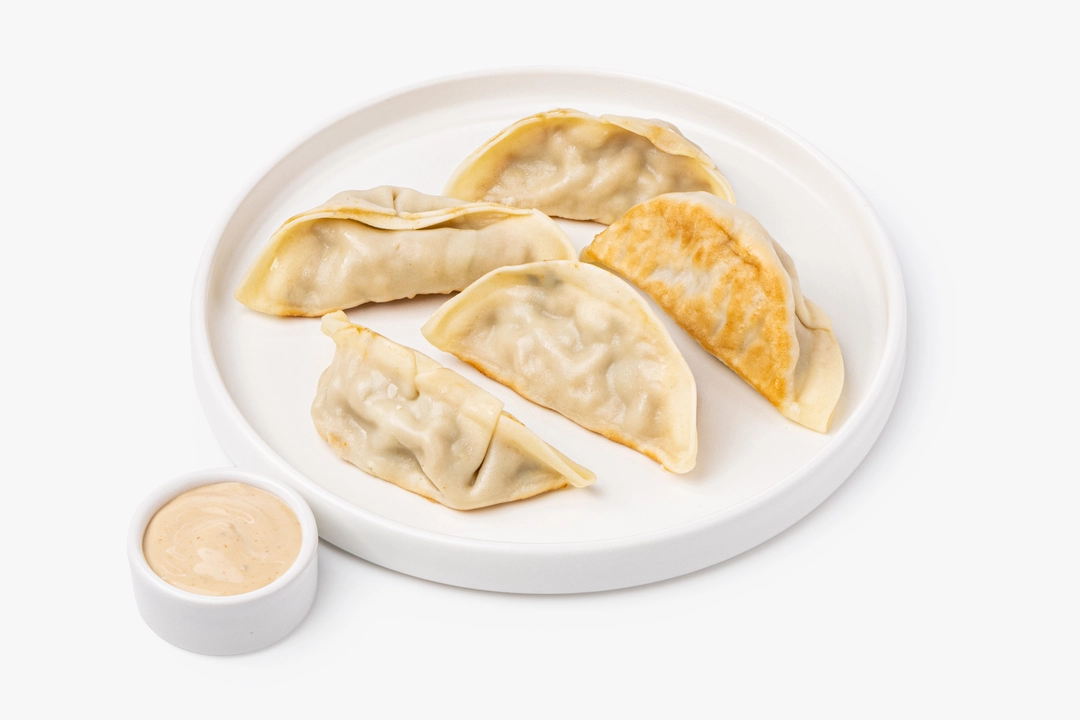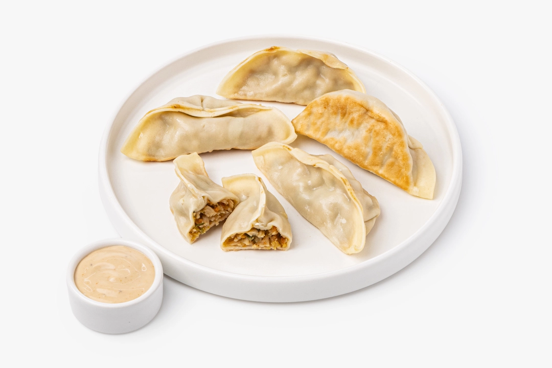 Японские пельмешки в форме полумесяца с начинкой из крабовых палочек и креветок — яркий азиатский дуэт. Тесто тонкое и слегка золотистое, а внутри ощущается лёгкая сладость морепродуктов, дополненная хрустом моркови и луковым ароматом. Остро-сладкий соус на майонезной основе с соевым соусом и паприкой подчёркивает вкус начинки и добавляет пикантную кремовость. Если слегка подогреть пельмешки, их тесто станет ещё более упругим, а начинка — ароматнее, напоминая о настроении уютного азиатского кафе.