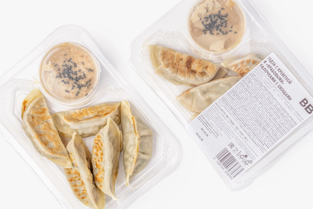 Гедза с креветкой и "крабовыми" палочками с овощами