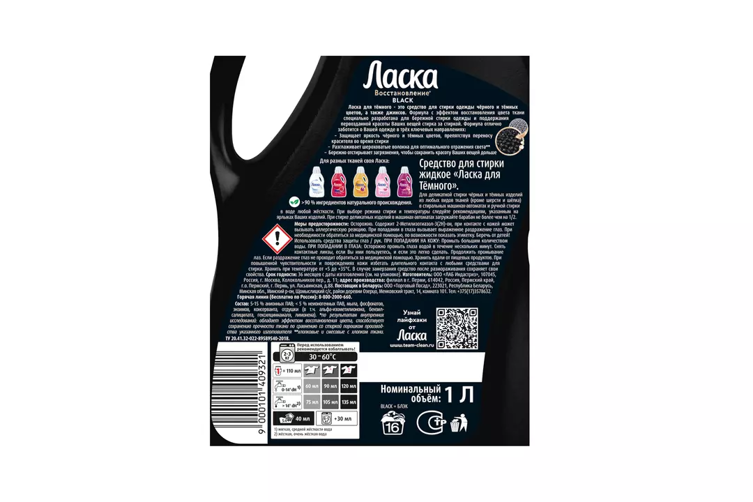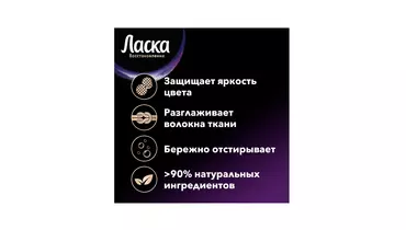 Гель для стирки Ласка Восстановление для тёмного белья Жидкий порошок Ласка Восстановление для тёмного эффективно и бережно отстирывает загрязнения на одежде, восстанавливая яркость чёрного и тёмных цветов и сохраняя прочность волокон ткани. В отличие от обычного порошка, гель Ласка содержит цветозащитные ингредиенты, которые поддерживают стойкость цвета одежды. Активные компоненты способствуют уменьшению количества катышков на ткани. Формула содержит более 90% ингредиентов натурального происхождения. ПРЕИМУЩЕСТВА ГЕЛЯ ДЛЯ СТИРКИ ЛАСКА: - Бережно и эффективно отстирывает загрязнения. - Восстанавливает и защищает яркость цвета. - Сохраняет форму ткани и препятствует появлению катышков. - Не оставляет разводов. Гель Ласка удобен в использовании: дозируйте жидкое средство согласно инструкции, заливайте его в отделение для стирального порошка или добавьте мерный колпачок со средством в барабан стиральной машины. Цвет геля может варьироваться от молочного до светло-фиолетового. Страна производитель-Россия