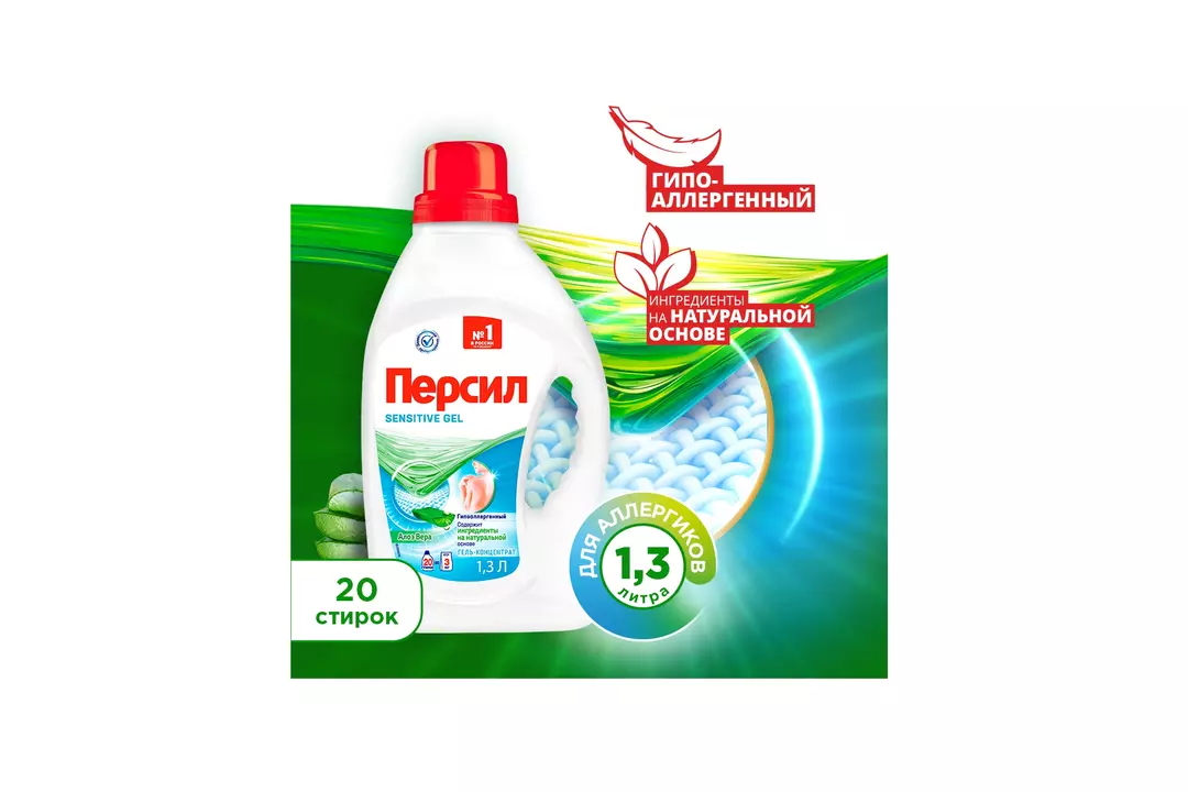 Гель для стирки Персил Sensitive для чувствительной кожи 1,3 л / Супермаркет