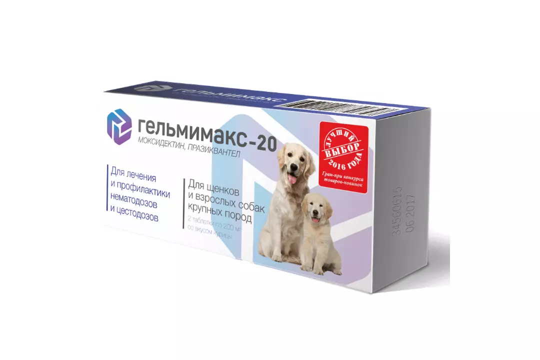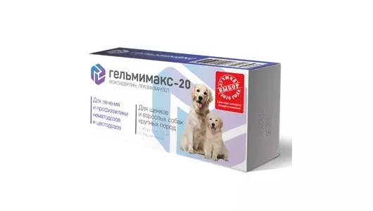 ГЕЛЬМИМАКС-10 для щенков и взрослых собак средних пород, (2 таб. по 120 мг/уп)