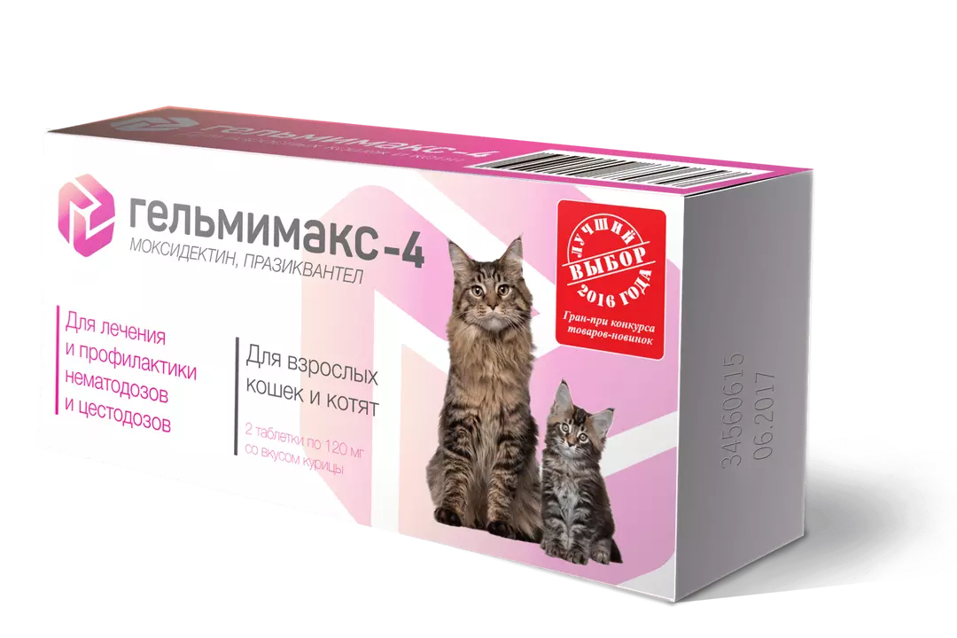 ГЕЛЬМИМАКС-4 для кошек и котят (2 таблетки по 120 мг/уп)