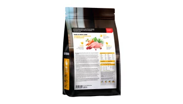 Курица свободного выгула  Высококачественное куриное мясо - источник аминокислот для поддержания сильной и здоровой мускулатуры   Омега жиры для здоровья шерсти и кожи Жирные омега-кислоты для поддержания здоровой, увлажненной кожи и блестящей шерсти   Пробиотический комплекс Пробиотический комлекс поддерживает правильный баланс полезных бактерий и помогает здоровому пищеварению
