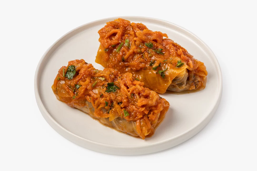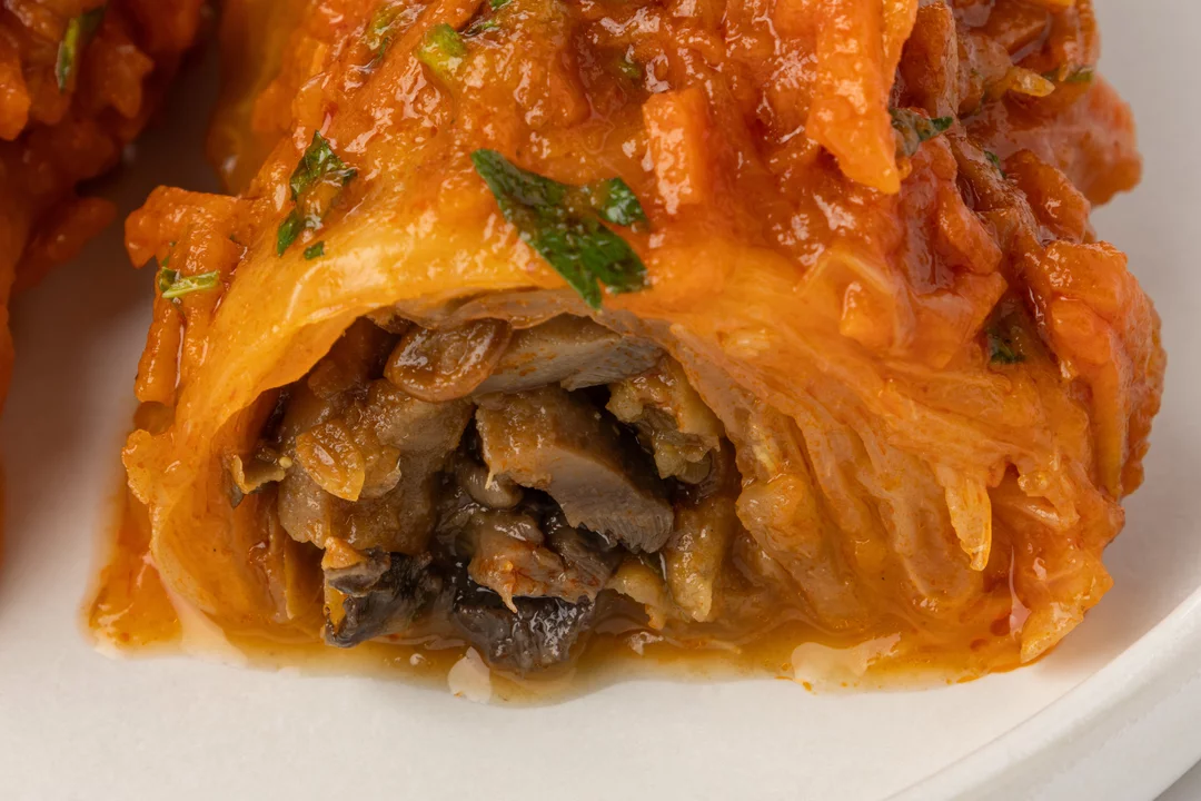 Веганская версия голубцов, приготовленная с чечевицей, шампиньонами и сочными овощами. Для заправки — ароматный томатный соус, подчеркивающий пряный вкус блюда. Эти голубцы подойдут не только тем, кто не ест мясо, но и придерживающимся строго рациона, ведь в 100 г продукта содержится менее 100 килокалорий.