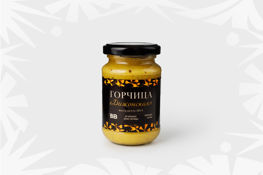 Эта пикантная приправа получила своё название благодаря французскому городу Дижон. Она приготовлена по рецептуре, близкой к традиционной, из жёлтых и коричневых семян горчицы, уксуса и лимонного сока с добавлением специй и пряностей. Горчица отличается насыщенным островатым вкусом со сладковато-медовыми нотками и горчинкой в послевкусии. Подходит для добавления в салатные заправки, вторые блюда и подачи с закусками.