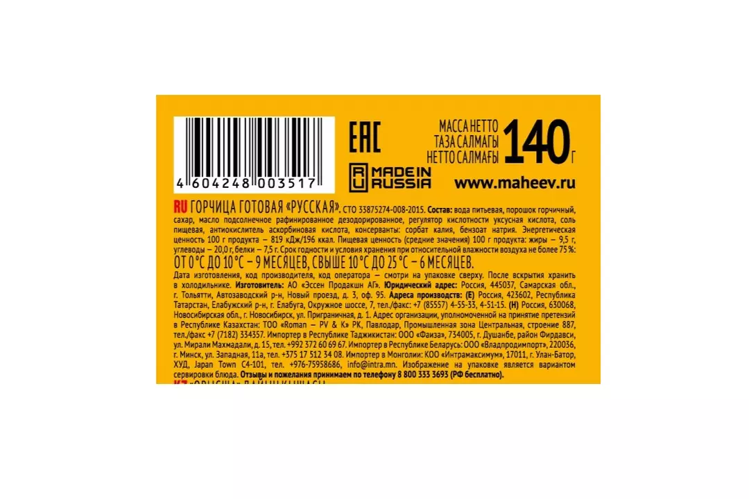 Горчица Махеевъ Русская 140 г / Супермаркет