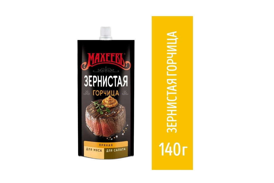 Горчица Махеевъ — знаменитая русская приправа, которая производится из цельных и молотых семян горчицы. Отлично сочетается с мясом, птицей, сосисками и колбасой. Не содержит ГМО.
