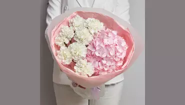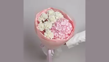 Гортензия и гвоздики в букете «Розовое облако» FMART by flowwow