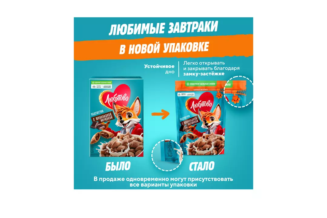 Готовый завтрак Любятово Подушечки с шоколадной начинкой 220 г / Супермаркет