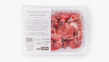 Охлаждённая говядина, нарезанная на аккуратные кусочки среднего размера. Берётся из голяшки и содержит жилку в естественном соотношении от 20/80 до 40/60. При длительном тушении в течение 2 часов мясо получается очень нежным. Идеально для жаркого, рагу, гуляша и подобных блюд, которые подразумевают медленную тепловую обработку.
