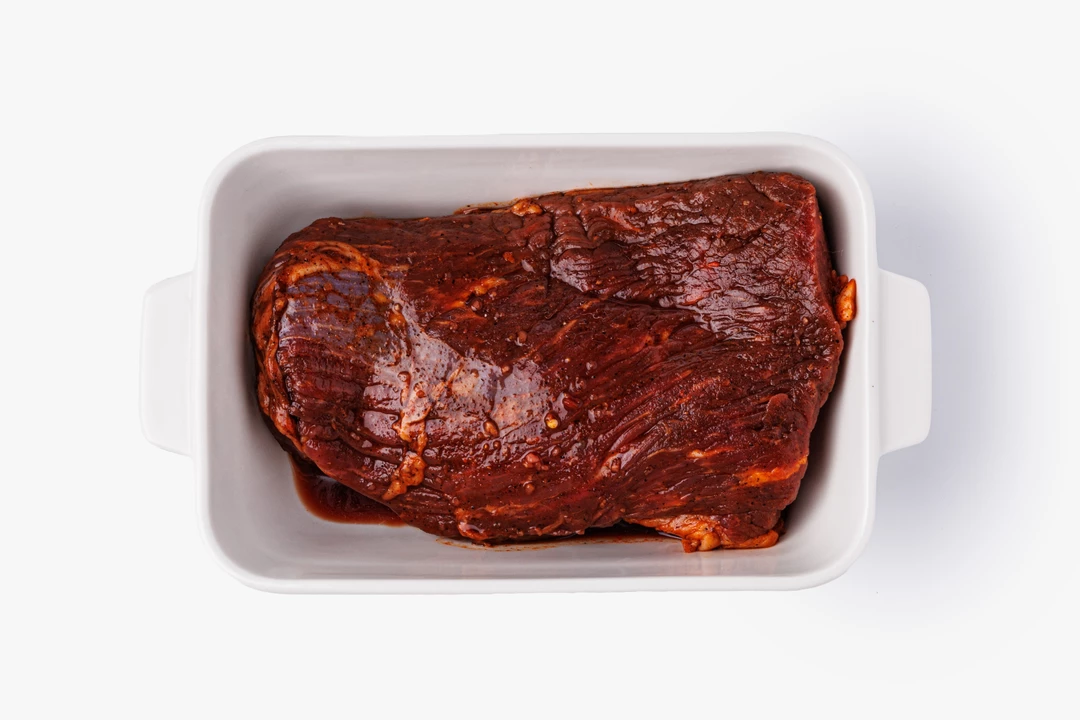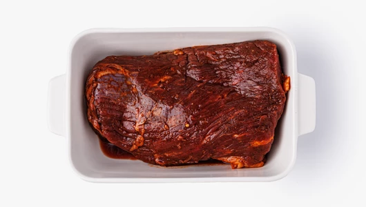 Нежный кусок говядины в пряно-терпком маринаде с нотами клюквы и брусники, чтобы вам не пришлось тратить время на дополнительную подготовку мяса. Естественная фруктово-ягодная кислинка оттеняет его насыщенный вкус, а добавление свёклы придаёт мясу красивый рубиновый оттенок при запекании. При правильном приготовлении говядина получается мягкой и сочной с аппетитной корочкой снаружи. Дополните блюдо вашим любимым гарниром — и сытный ужин готов.