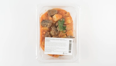 Кусочки говядины медленно томятся вместе с картофелем и овощами в томатном соусе. Мясо становится мягким и пропитывает соус насыщенным вкусом. В составе есть морковь, лук и немного чеснока — они добавляют лёгкую сладость и аромат. Картофель получается рассыпчатым, а подлива объединяет все ингредиенты в сбалансированное домашнее блюдо. Хорошо подавать его горячим, дополнив кусочком свежего хлеба или зеленью. Блюдо уже готово — его нужно лишь разогреть, чтобы насладиться сочетанием томлёного мяса и овощей в сбалансированном соусе с нотками чёрного перца.