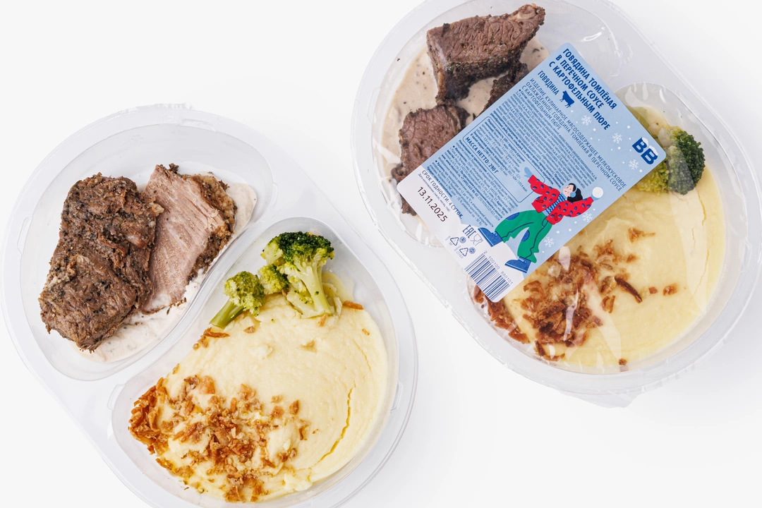 Мягкая говядина в сочетании со сливочным пюре и брокколи на пару — сытное блюдо, сбалансированное по составу и вкусу. Состав проверен: нет консервантов, усилителей вкуса и антибиотиков