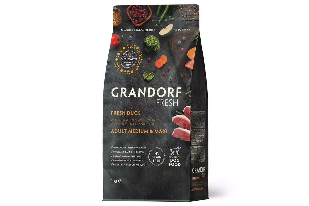 GRANDORF Fresh Med&Maxi Adult Duck&Potato Корм сух.утка,батат д/собак сред/круп.пор.1кг / Супермаркет