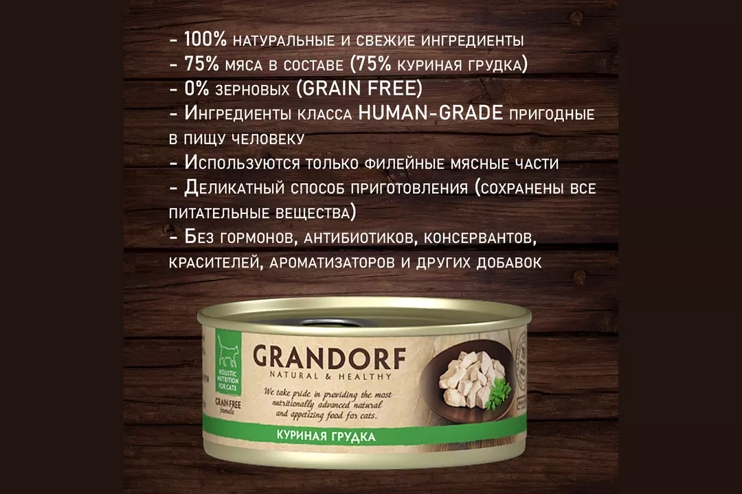 GRANDORF Корм влаж.куриная грудка д/кошек конс.70г / Супермаркет