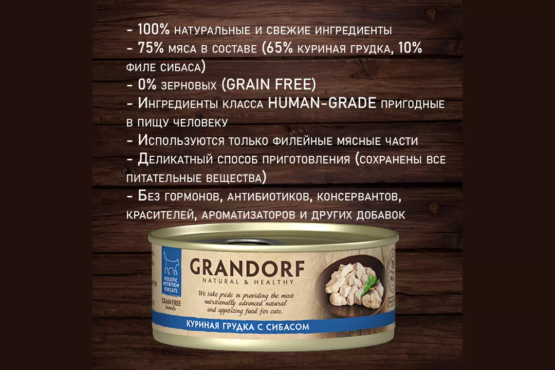 GRANDORF Корм влаж.куриная грудка с сибасом д/кошек конс.70г купить с бесплатной доставкой на дом всего за 2 часа из ВкусВилла. Также можно оформить онлайн-заявку на самовывоз и забрать собранный заказ через 30 минут. Цены, отзывы о товарах от наших покупателей, действующие акции на официальном сайте ВкусВилл.