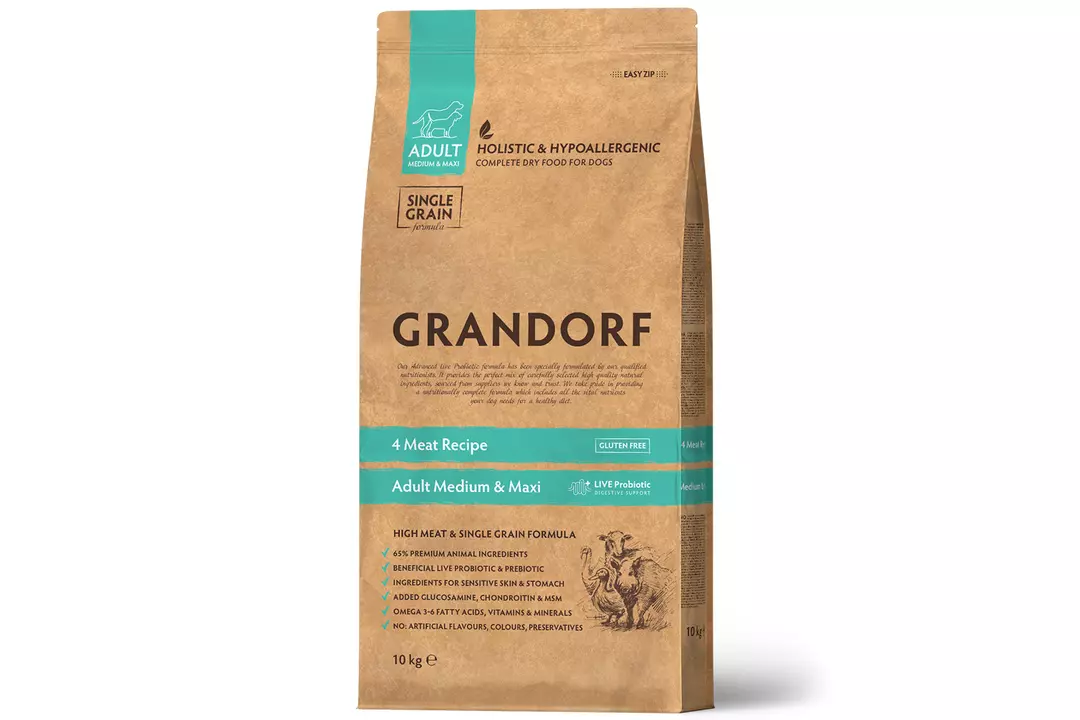GRANDORF Med&Maxi Adult Корм сух.4вида мяса с пробиотиками д/собак средних и крупных пород 10кг / Супермаркет
