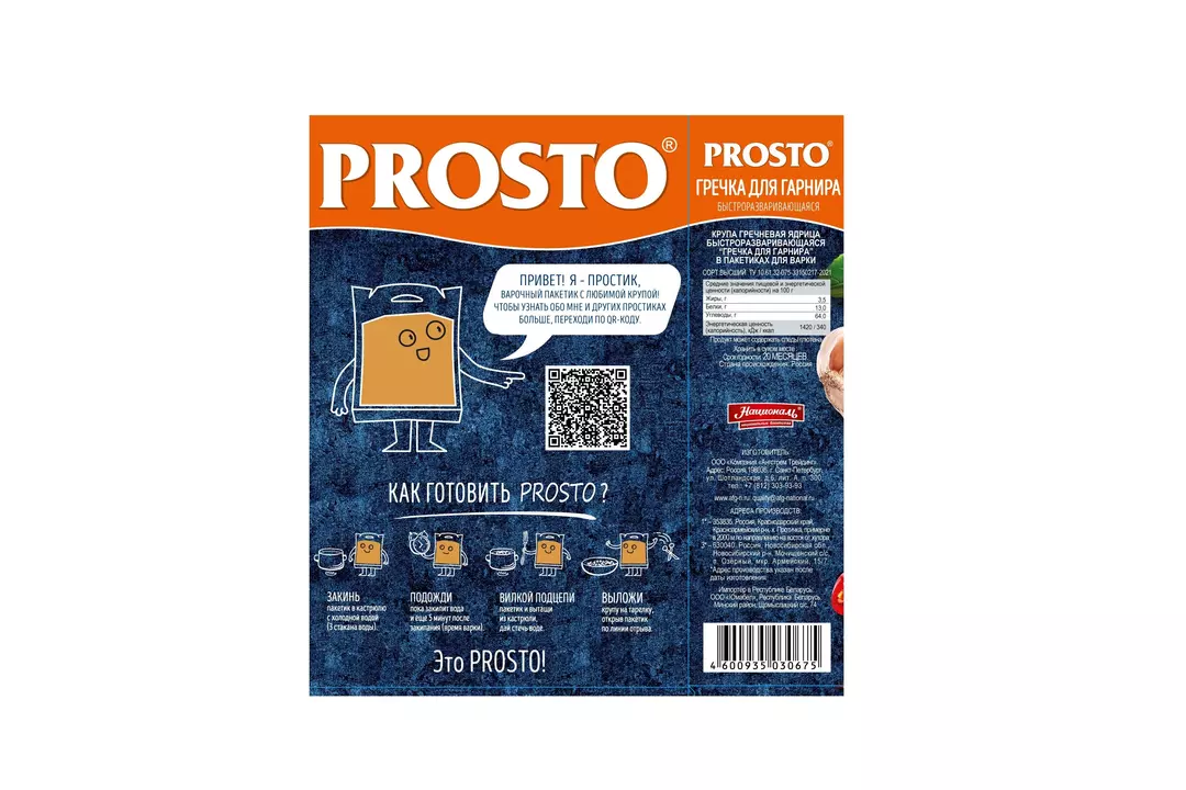 Гречка для гарнира PROSTO — это чистая крупа высочайшего качества, прошедшая более длительную обработку паром, за счёт чего эта гречка варится значительно быстрее всех остальных - всего 5 минут! Производитель: ООО Компания Ангстрем Трейдинг Страна-производитель Россия