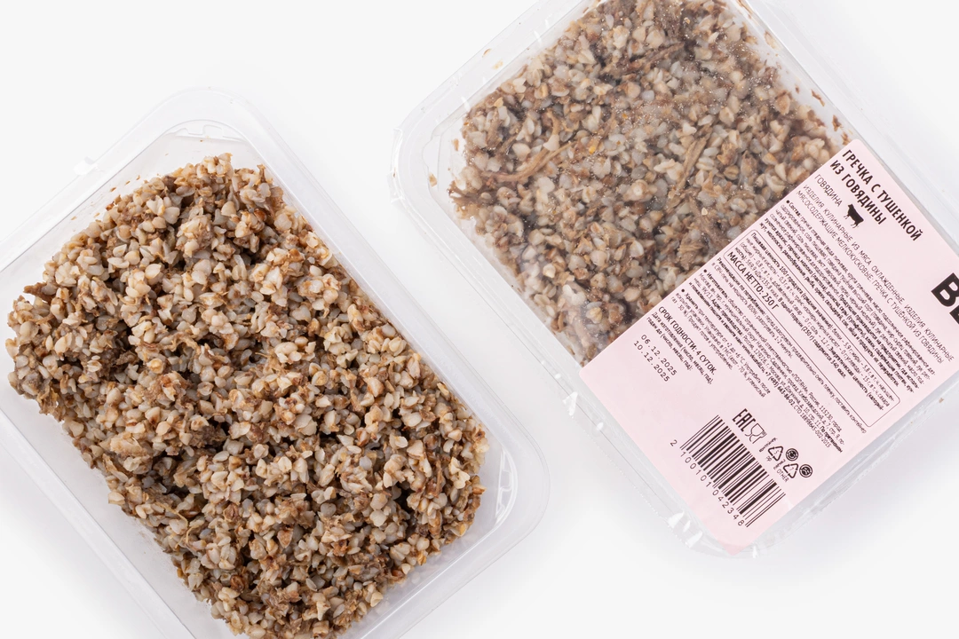 Рассыпчатая гречка и мягкая тушёнка из говядины — настоящая классика для тех, кто ценит простые и насыщенные вкусы. Крупа впитывает сок от тушёнки, а поджаренный лук отдаёт свой аромат. Кусочки говядины — нежные, с лёгкой пряной ноткой лаврового листа и перца. После разогрева от блюда можно почувствовать аппетитный аромат простой домашней кухни — будто ужин только что приготовили на плите, и остаётся лишь подать его и сесть за стол, чтобы не спеша насладиться тёплым и уютным моментом.