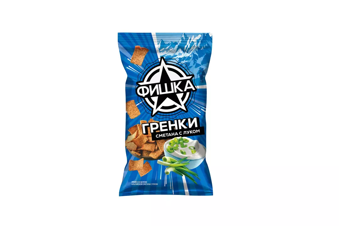 Гренки Фишка - это вкусные открытия, гастрономические путешествия в разные уголки света. Ощутите свежесть альпийских лугов вместе с нежным вкусом сливочной сметаны и сочного зелёного лука! Страна-производитель Россия