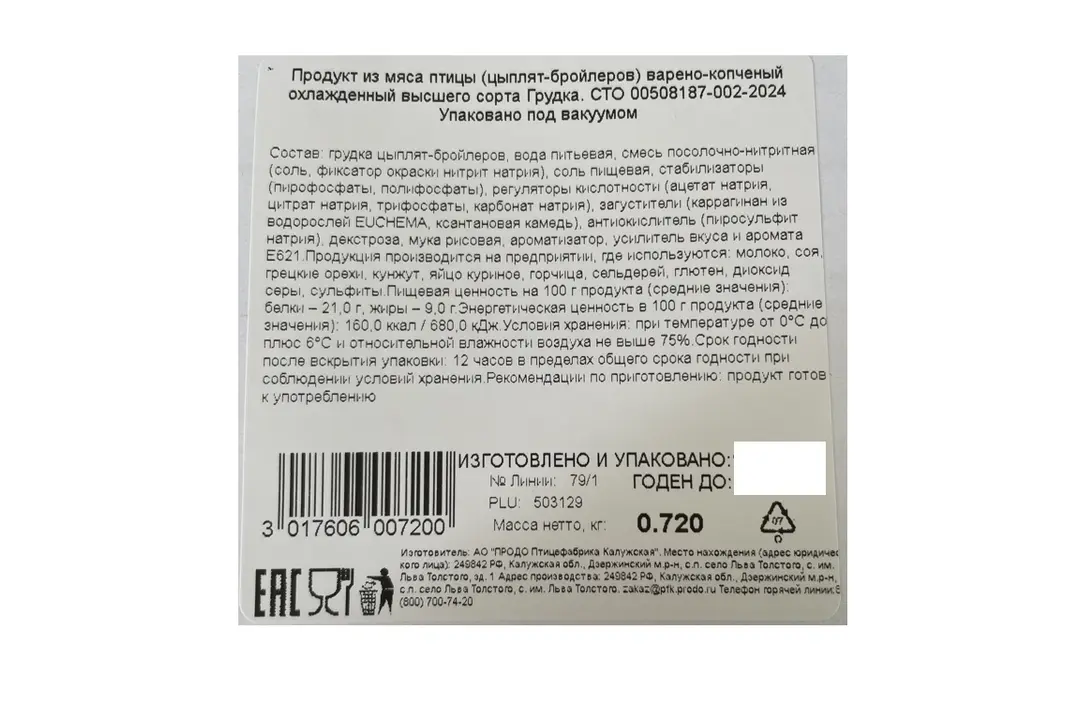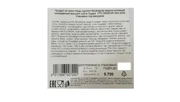 Грудка куриная Ясная горка варено-копченая ~ 600 г / Супермаркет