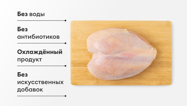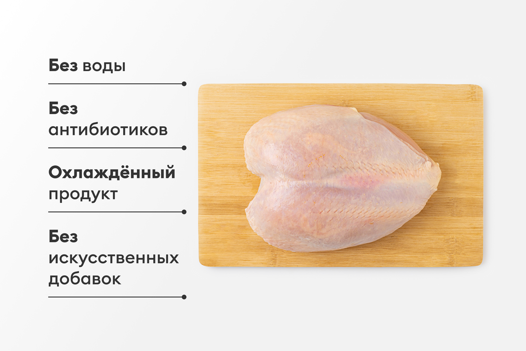 Охлаждённая куриная грудка без воды и искусственных добавок. Мясо проверено на 23 вида антибиотиков