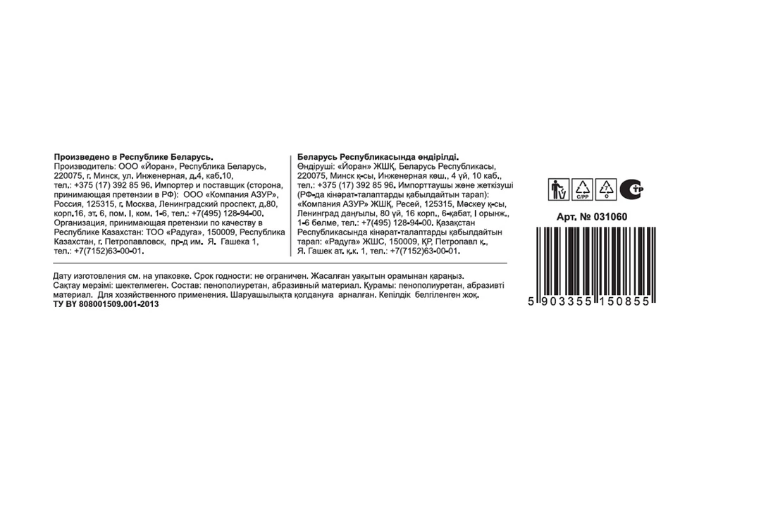 Набор из 5-ти двухслойных профильных губок для мытья посуды. Фибра не крошится и не окрашивает посуду. Удобный размер для женской руки. Углубления по бокам защищают маникюр и помогают удерживать губку при мытье посуды. Долго держит форму благодаря высокой плотности поролона. Графитовый цвет – стильное и универсальное решение, впишется в любой современный интерьер. Размеры одной губки: 8,5 х 6,5х 4 см. Страна-производитель Беларусь