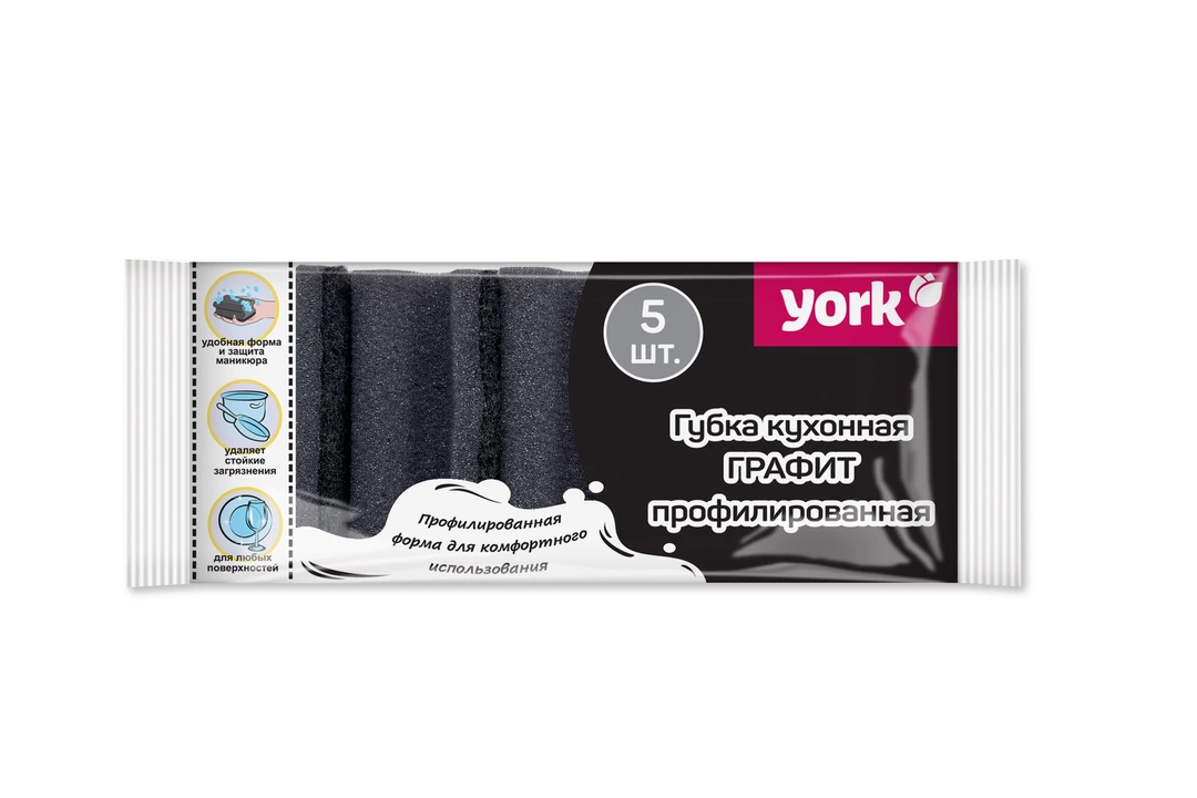 Губки для мытья посуды York Графит профилированная 5 шт