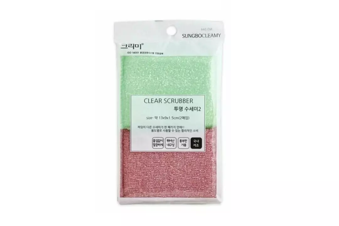 Губки Sungbo Cleamy Clear Scrubber для мытья посуды и кухонных поверхностей 13х9 х1,5см 2 шт / Супермаркет