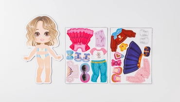 Игра в одевашки, почти как в нашем детстве. Только в этом наборе и куколка, и наряды изготовлены из мягкого, но прочного магнитного винила. В гардеробе у модницы есть всё для весенних образов: юбка и топ для встречи с подружками, шорты с футболкой для расслабленной прогулки, нарядное платье для вечеринки, а также несколько пар обуви, сумка и другие аксессуары.