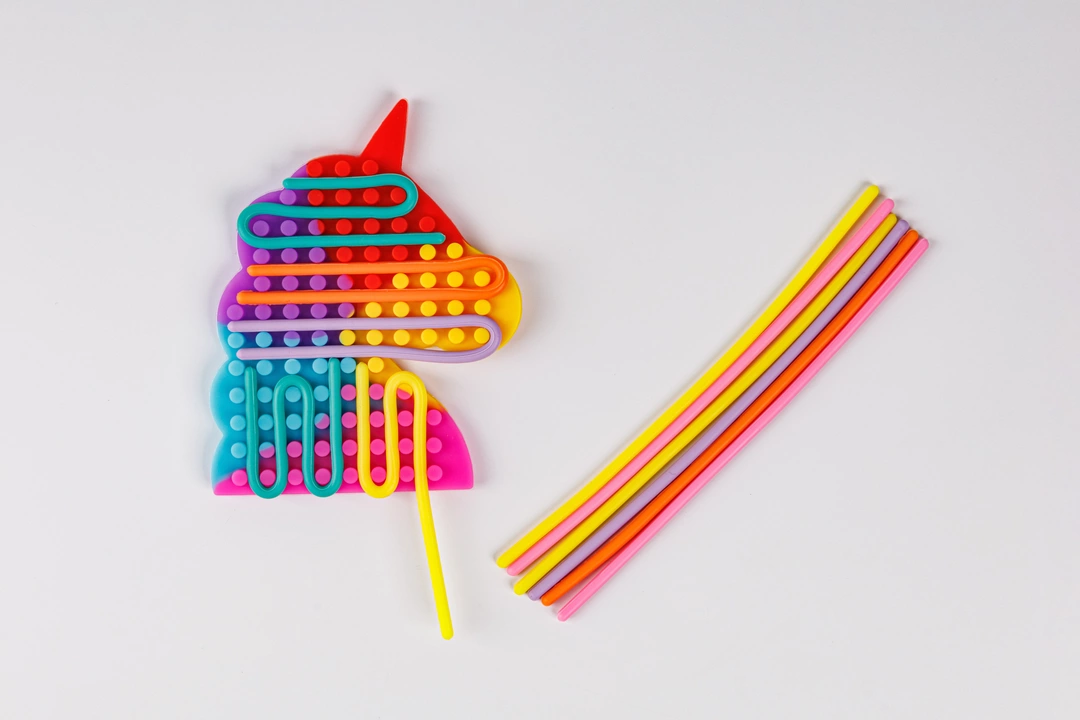 С помощью игрового набора малыш сложит узоры из гибких соломинок на специальной фигурной доске. Двустороннее поле содержит разные схемы для воспроизведения, поэтому ребёнок не заскучает. Создание композиций развивает логическое мышление и мелкую моторику. Соломинки легко снимаются и переставляются, позволяя многократно экспериментировать с фигурами. В ассортименте несколько вариантов дизайна, свои пожелания укажите в комментарии к заказу.