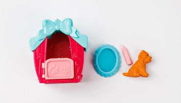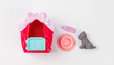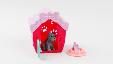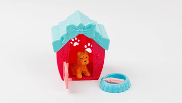 В наборе — будка, миска и бутылочка для кормления, чтобы малыш мог позаботиться о своём питомце. Яркие небольшие фигурки удобно держать в руках. Простая конструкция набора поможет ребёнку придумывать разные истории. Такие сюжетные игры развивают фантазию и учат бережному отношению к животным.