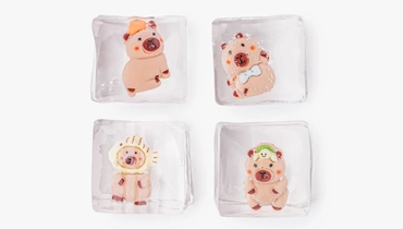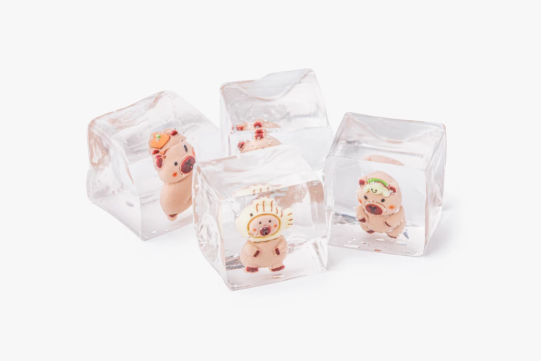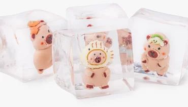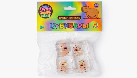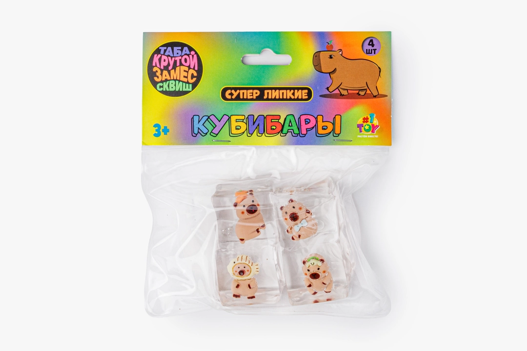 В наборе 4 мягких прозрачных кубика с милыми капибарами внутри. Их легко мять и сжимать в руках, снимая напряжение. Игрушка медленно восстанавливает форму, и забавный зверёк готов к новым играм. Детям понравится придумывать истории про жителей ледяных домиков, это развивает у них фантазию и воображение. Игрушка умещается в ладошке, поэтому её удобно брать с собой в дорогу. Рекомендовано для детей старше 3 лет.