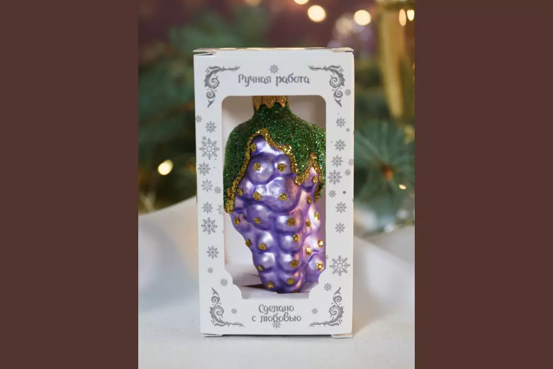 Игрушка елочная Коломеев Виноград в подарочной упаковке h-9 см 1 шт / Супермаркет