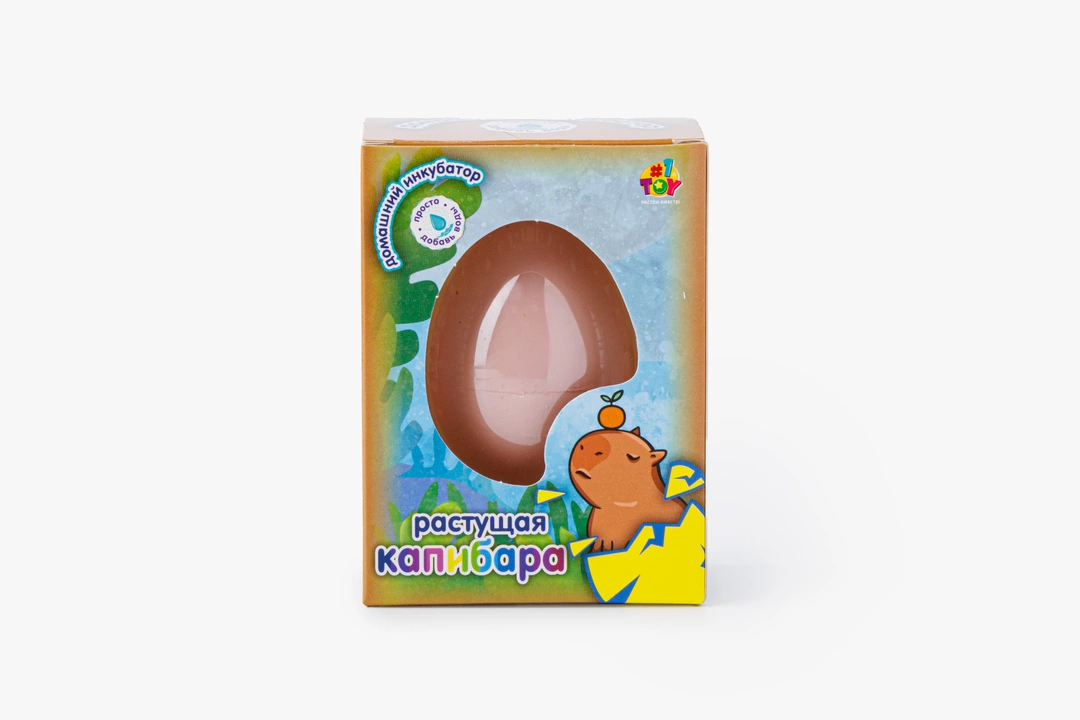В этом яйце хранится маленький сюрприз — будущая капибара, которую можно вырастить самостоятельно. Поместите яйцо в контейнер и залейте водой комнатной температуры, чтобы запустить процесс. Через сутки скорлупа медленно треснет, и оттуда появится фигурка детёныша. Замените воду на свежую, чтобы игрушка продолжала увеличиваться в размерах. Через двое суток капибару можно пересадить в более просторную ёмкость для дальнейшего наблюдения. Всё это напоминает настоящую магию, а детям даёт возможность почувствовать себя волшебниками.