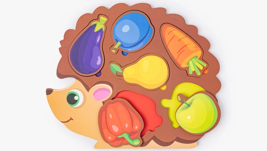 Развивающая игрушка из дерева предлагает малышу интересную задачу — подобрать фигурки к соответствующим отверстиям. Гладкие детали удобно лежат в детской ладошке и приятны на ощупь. Ребёнок учится сопоставлять формы и размеры, развивая зрительно-моторную координацию. Игрушка помогает освоить понятия «больше-меньше» и «часть-целое» в доступной игровой форме. Экологичные материалы и закруглённые края делают её безопасной для самых маленьких. Такие занятия формируют логическое мышление и усидчивость.