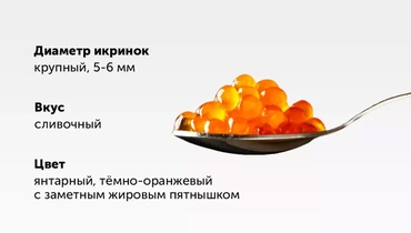 За особенный вкус — нежный, слабосолёный, со сливочным послевкусием — её называют царской. Такому «титулу» соответствует и внешний вид деликатеса: икринки крупные, правильной шарообразной формы, с однородным окрасом. Тонкая оболочка легко лопается, и икра будто тает на языке.