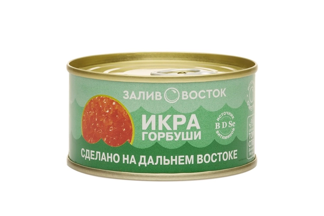 Икра лососевая Залив Восток Горбуша тихоокеанская зернистая соленая ж/б 140 г / Супермаркет