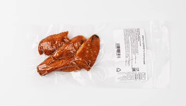 Эта икра минтая обладает плотной текстурой, ярким солоноватым вкусом, лёгкой горчинкой и ароматом дымка. Копчение на щепе придаёт икре насыщенный вкус. Её удобно нарезать ломтиками и подавать как самостоятельную закуску — будет идеально к пенным напиткам. Продукт уже готов к употреблению, упакован под вакуумом и хранится 14 дней.